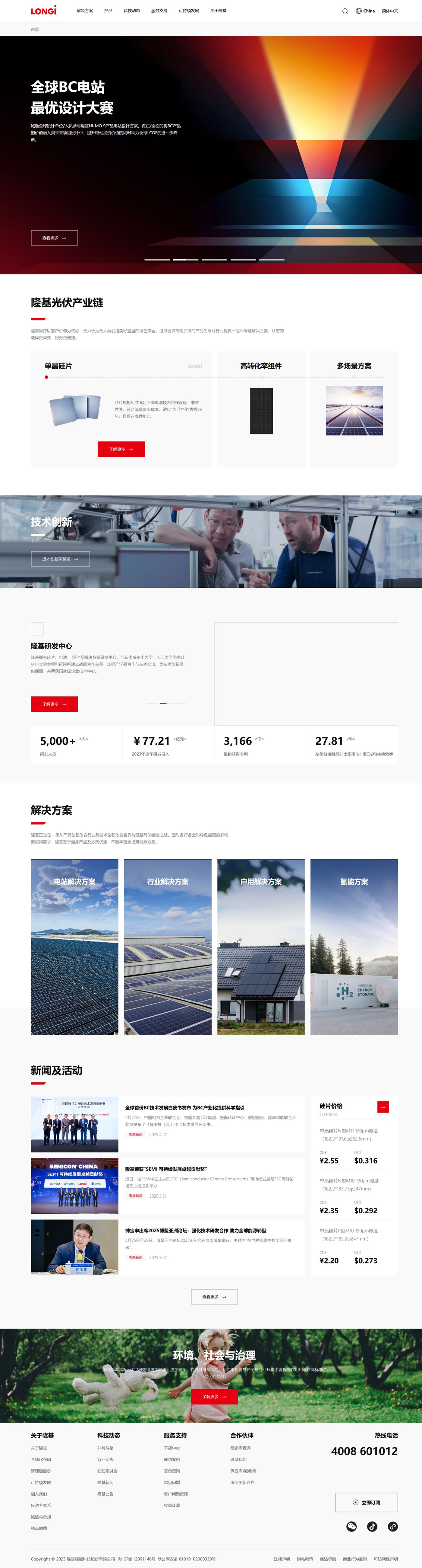 綠能以“善用太陽光芒,創造綠能世界”為使命,秉承“穩健可靠、科技引領”的品牌定位,聚焦科技創新,構建單晶硅片、電池組件、分布式光伏解決方案、地面光伏解決方案、氫能裝備五大業務板塊。形成支撐全球零碳發展的“綠電”+“綠氫”產品和解決方案。
