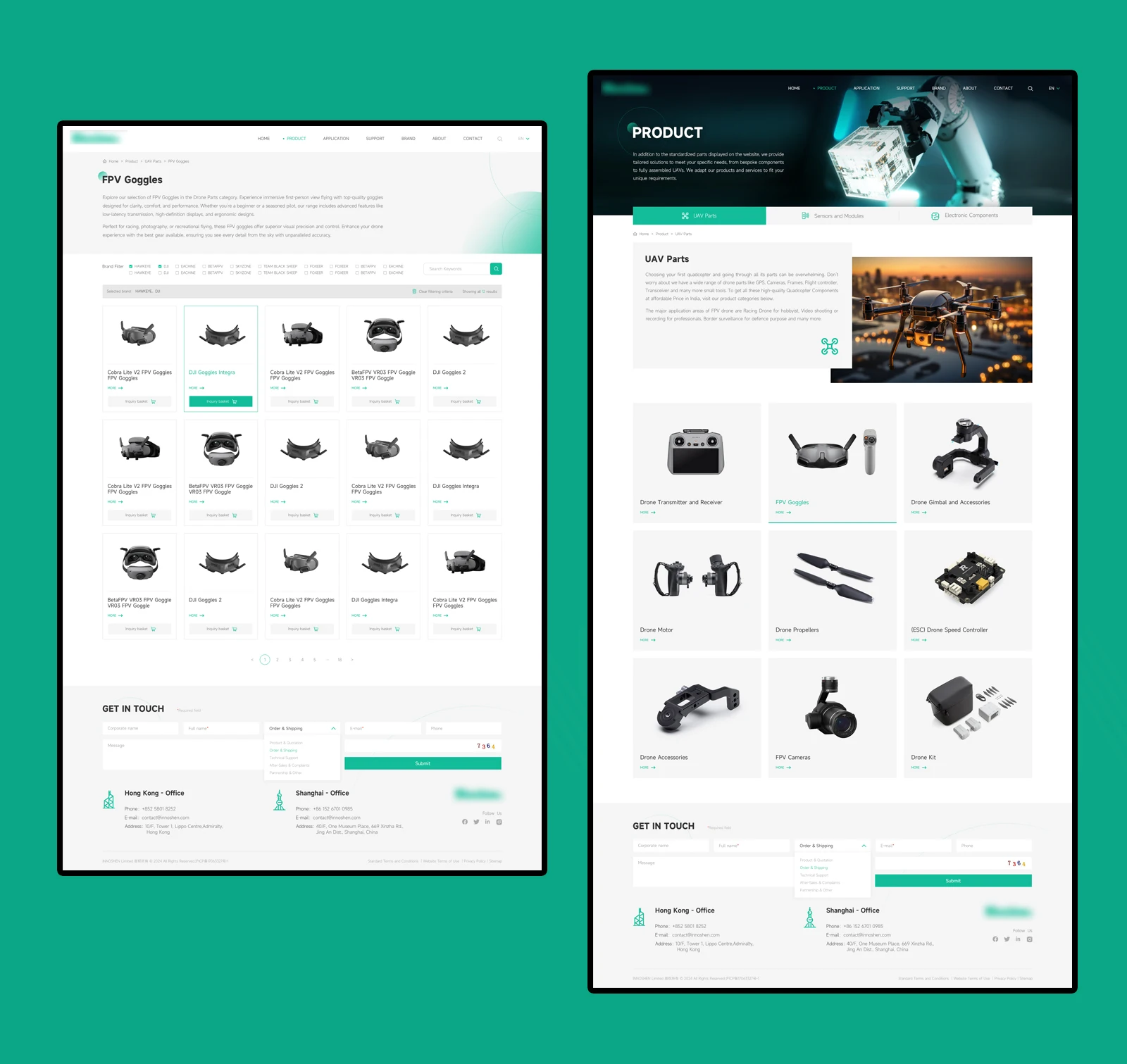 設計理念網站整體配色方面,在使用主VI綠色為主的情況下使用灰色為點綴色,兩種顏色的搭配會產生強烈的對比感突出主體內容的同時,更強化高端與視覺聚焦的效果!