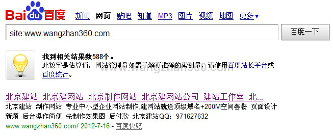 想想百度從6月22日封站開始到現在7月16日,已經將近一個月的時間了,百度已經把我們的站,關鍵詞(北京建站)網址www.aixianzhi.com 雪藏了一個月了, 所有關鍵詞都沒有排名了,每天刷新沒有變化的時候其實我的心里還是很失落的,不過今天我徹底高興了,說明百度對我們的站還是有印象的, 所以一定要堅持原創,做SEO要有一個原則:優化網站為目的,服務為原則的態度!