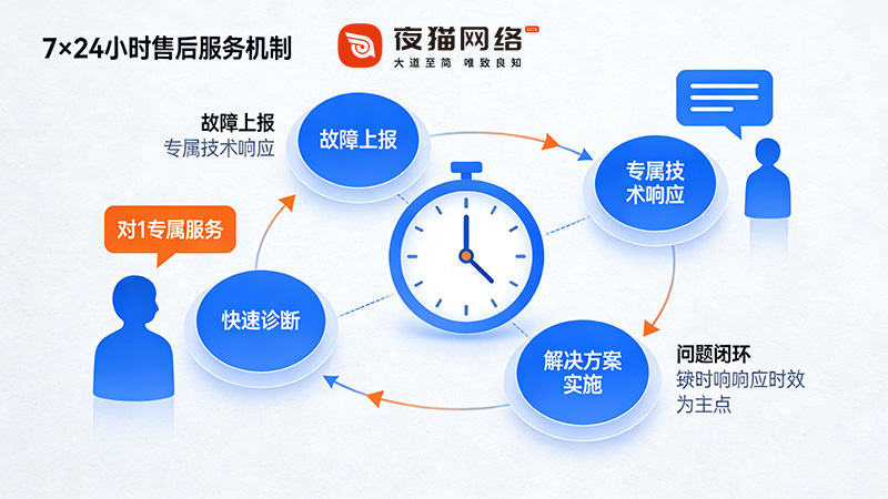 其四,全時(shí)段響應(yīng)保障應(yīng)急運(yùn)維效率。建立7×24小時(shí)售后服務(wù)機(jī)制,配備1對(duì)1專屬技術(shù)人員全程跟進(jìn)服務(wù)。網(wǎng)站故障的突發(fā)性決定了響應(yīng)時(shí)效的重要性,全時(shí)段響應(yīng)與專屬跟進(jìn)模式,能夠快速定位故障原因并實(shí)施修復(fù),減少因網(wǎng)站停運(yùn)或異常帶來的品牌損失與業(yè)務(wù)影響,這也是專業(yè)維保服務(wù)的核心競(jìng)爭(zhēng)力之一。